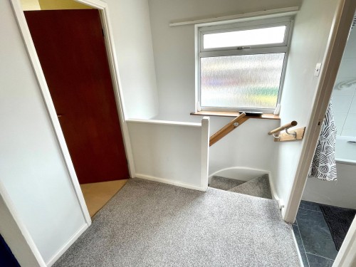 Window to front, access to roof space and airing cupboard.