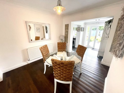 4.7m x 3.2m (15' 5" x 10' 6") max. Having a range of fashionable wall and base cupboards with a high gloss finish, granite effect work surfaces incorporating stainless steel sink unit, built in double oven, separate electric hob, overhead extractor, plumbig for washing machine, window to rear, radiator and French door leading to the rear garden.