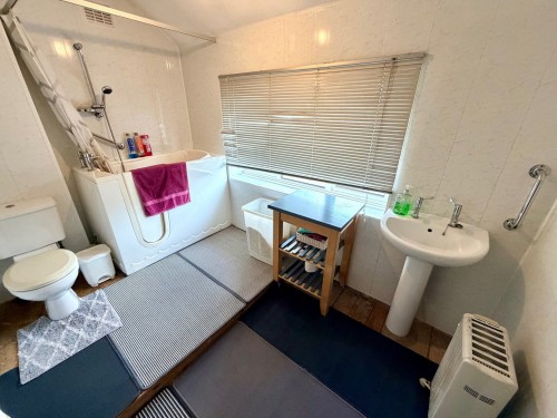 3.2m x 2.1m (10' 6" x 6' 11") Having shower, low flush wc, pedestal wash hand basin and radiator.