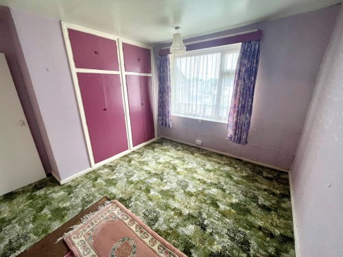 3.5m x 3.2m (11' 6" x 10' 6") max. Window to rear, radiator and built in wardrobe.