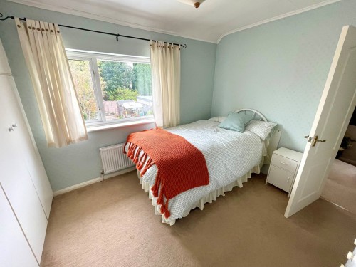 3.0m x 2.9m (9' 10" x 9' 6") Window to rear, radiator and fitted wardrobes.