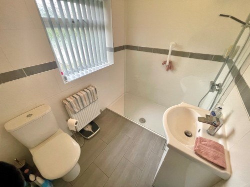 Being fully tiled to all exposed walls, radiator, shower enclosure with dual head mixer shower, vanity unit with wash hand basin and low flush wc.