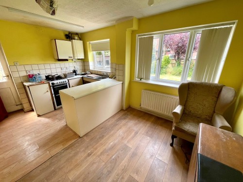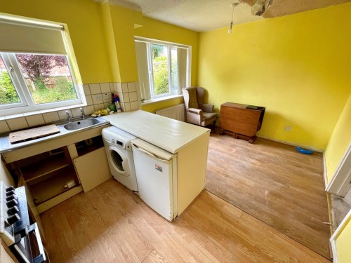 4.4m x 3.0m (14' 5" x 9' 10") Windows to rear, radiator, wall mounted central heating boiler, door to side and under stairs cupboard.