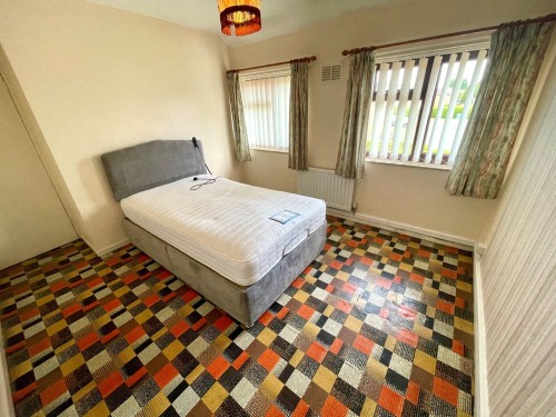 3.4m x 3.2m (11' 2" x 10' 6") Window to front, radiator and built in wardrobe.