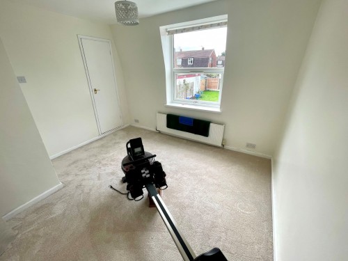 Window to side, access to roof space and airing cupboard with central heating boiler.