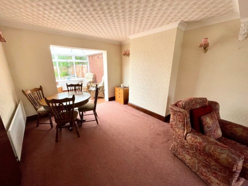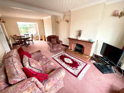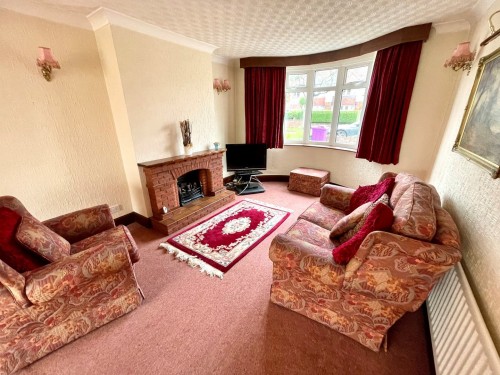 3.3m x 6.8m (10' 10" x 22' 4") Bow window to front, two radiators, wall light points and feature fireplace.