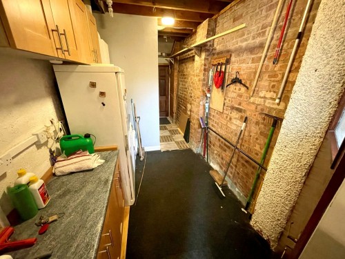 2.1m x 5.5m (6' 11" x 18' 1") max. Wall and base cupboards, plumbing for washing machine, wall mounted central heating boiler and doors to front and rear.