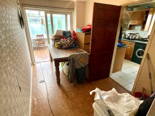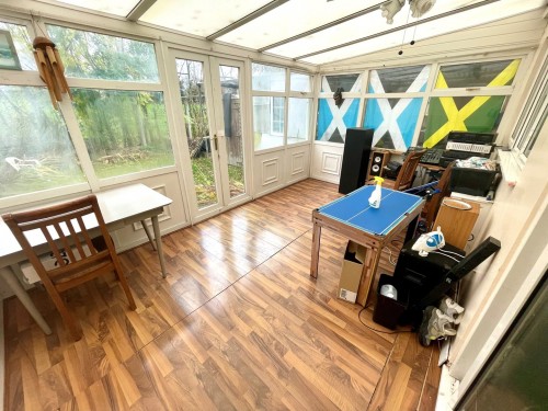 2.2m x 3.5m (7' 3" x 11' 6") Under stairs cupboard, radiator and patio door leading to the conservatory.