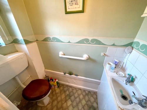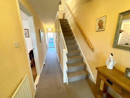 Two radiators, stairs off, smoke detector, under stairs cupboard, guest cloaks and door to rear garden.