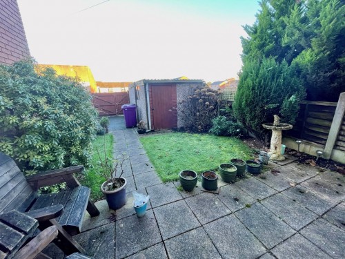 There is an open plan lawn area to the front of the property and vehicular access to the rear garden with parking space, detached concrete sectional garage, lawn area and paved patio.
