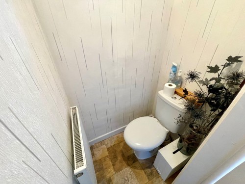 Plumbing for washing machine, wall mounted central heating boiler, door to rear garden and separate wc.
