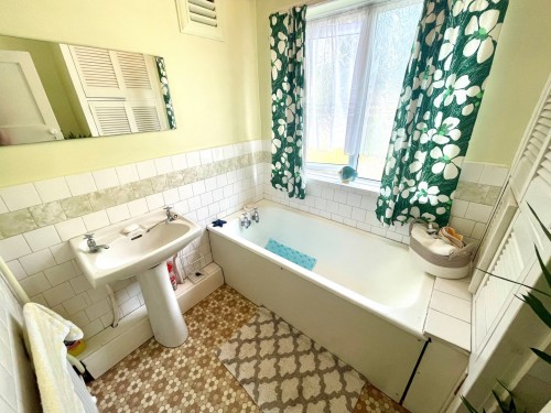 Panelled bath , pedestal wash hand basin, radiator and airing cupboard.