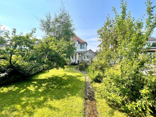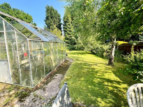 A driveway leads past a lawn front garden set behind a dwarf wall. There is side access to the large private mature rear garden having lawn area with greenhouse and borders containing a variety of shrubs an plants.