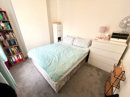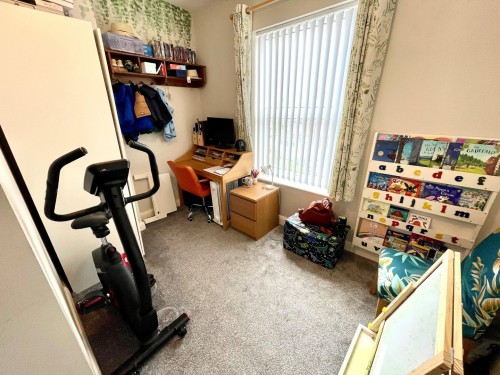 3.3m x 2.1m (10' 10" x 6' 11") Window to front, radiator, built in cupboard and access to roof space.
