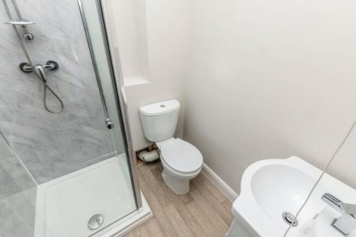 1.7m x 1.5m (5' 7" x 4' 11") Shower enclosure with mixer shower, vanity unit with wash hand basin, low flush wc and heated towel rail.