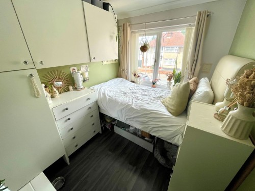 1.9m x 2.4m (6' 3" x 7' 10") Window to front, radiator and built in cupboards.