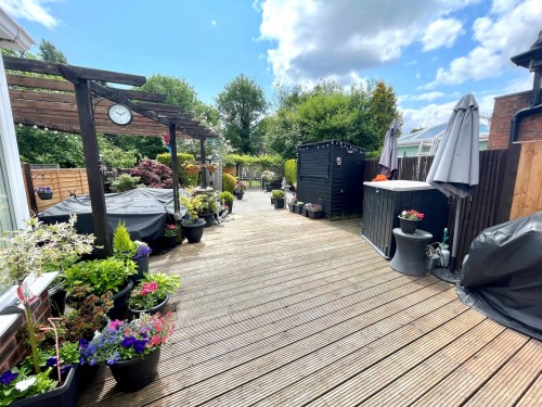 A block paved frontage provides off road parking for at least two family size vehicles and leads to the garage. There is a long well maintained pleasant rear garden having an extensive area of decking,, outside tap, wooden garden bar, easy to maintain gravel area with a variety of shrubs and artificial lawn area beyond.