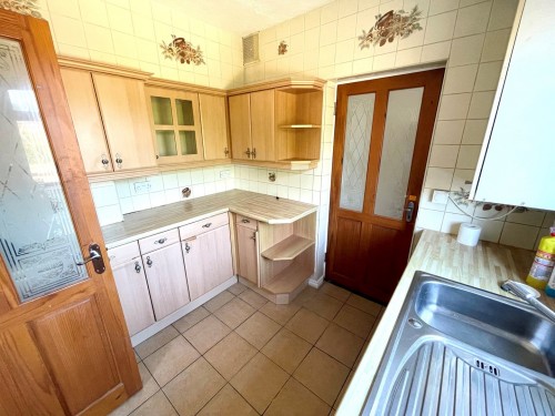 23m x 2.6m (75' 6" x 8' 6") Having a range of wall and base cupboards with work surfaces incorporating a stainless steel sink unit, splash back tiling, ceramic tiled floor, window to rear and door leading to the utility room.