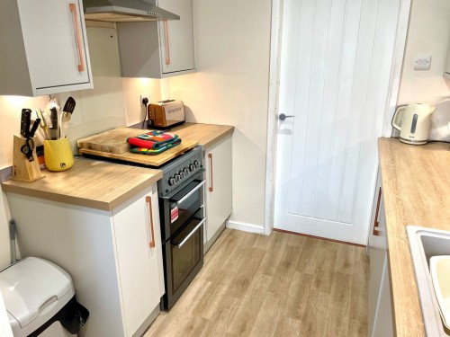 2.1m x 2.2m (6' 11" x 7' 3") plumbing for washing machine and French doors leading to the rear garden.