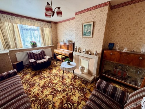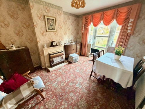 3.3m x 4.4m (10' 10" x 14' 5") Bay window to front, radiator and tiled fireplace.
