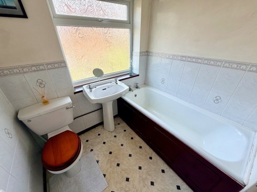 White suite, radiator and airing cupboard.