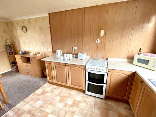 2.7m x 5.5m (8' 10" x 18' 1") Base cupboards with matching work surfaces incorporating a stainless steel sink unit with mixer tap, windows to front and rear, plumbing for washing machine, gas and electric cooker points, radiator and built in storage cupboards.