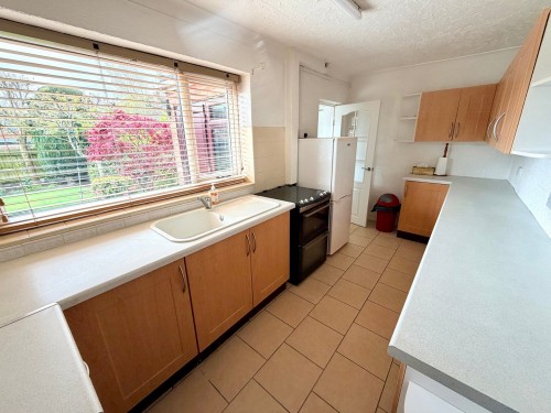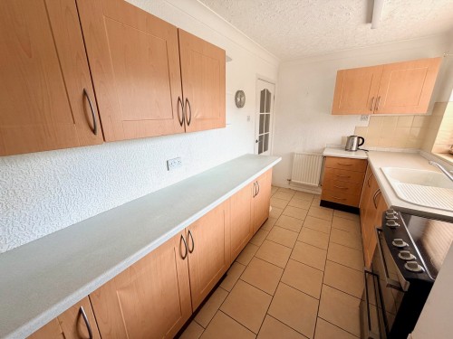 4.4m x 2.1m (14' 5" x 6' 11") Having a range of wall and base cupboards with matching work surfaces incorporating sink unit, splash back tiling, electric cooker point, ceramic tiled floor, window to rear, radiator and door to utility Room.
