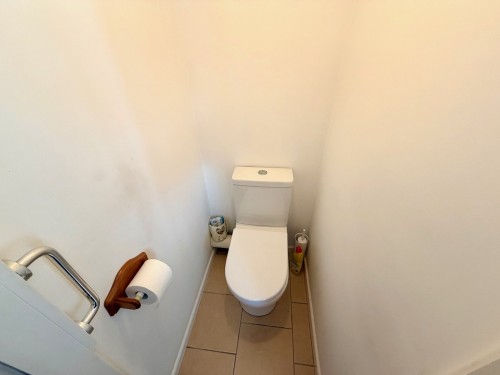 Having low flush suite and ceramic tiled floor.