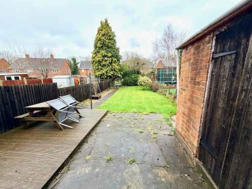A driveway provides off road parking and there is a shared side access leading to the rear garden with decking, patio, brick built shed and lawn area.