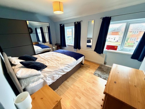 4.2m x 2.8m (13' 9" x 9' 2") Windows to front, laminate floor, radiator and built in cupboard.