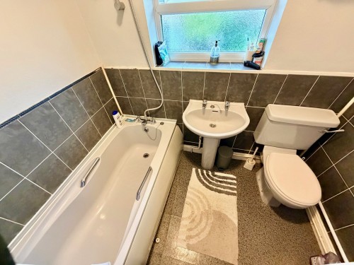 Having panelled bath, pedestal wash hand basin and low flush wc.