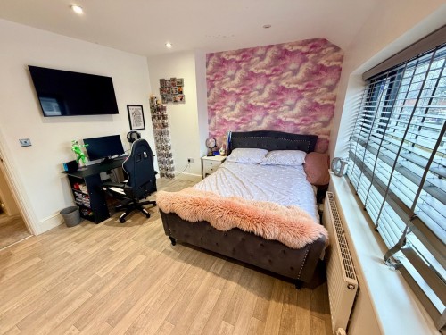 4.0m x 4.1m (13' 1" x 13' 5") max. Window to rear, laminate floor, fitted wardrobes, radiator and down lighting.