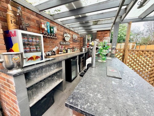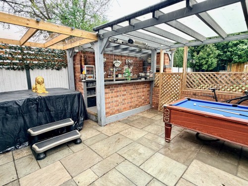 The property is approached via a driveway which provides off road parking for at least two family size vehicles. There is a private and fully enclosed rear garden with artificial lawn for the ease of maintenance and the ideal Summer entertaining area having paved patio and brick built bar with quartz work surfaces and lighting.