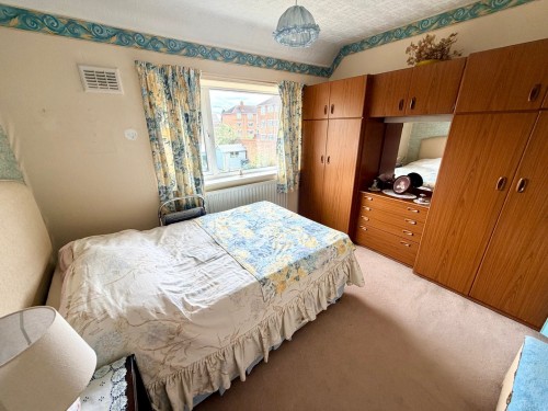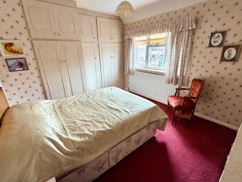 3.6m x 3.1m (11' 10" x 10' 2") Window to front, radiator, fitted wardrobes and built in cupboard with central heating boiler.