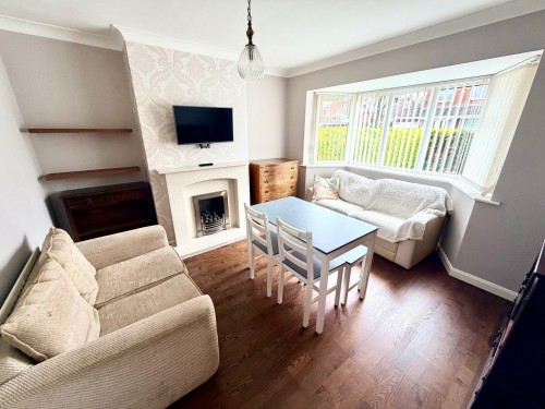 3.5m x 3.9m (11' 6" x 12' 10") Window to front, radiator and feature fireplace with flame effect gas fire.